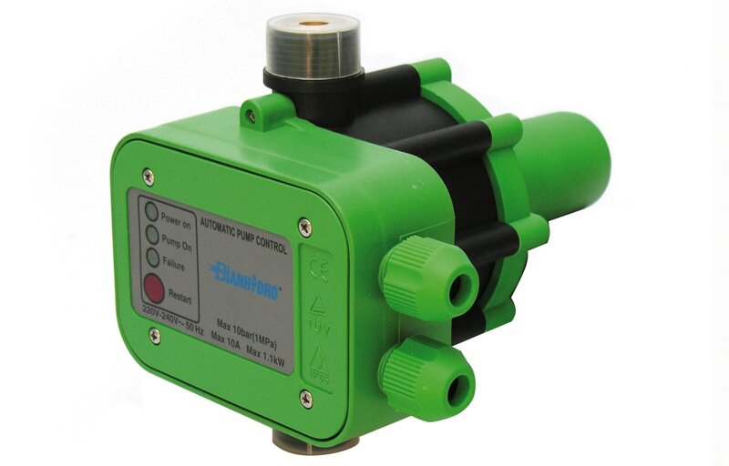 Regolatore automatico per elettropompe. Alimentazione 220V-240V, 50/60 Hz, IP 65. Adatto a motori di potenza max 1,5 HP (1,1kw) per pressione max 10 Bar. Temperatura max 60°. Prodotto Certificato corrispondente alle norme R.o.H.s. per collegamento a elettrica, idraulica, pompa. GRUPPO SONIN